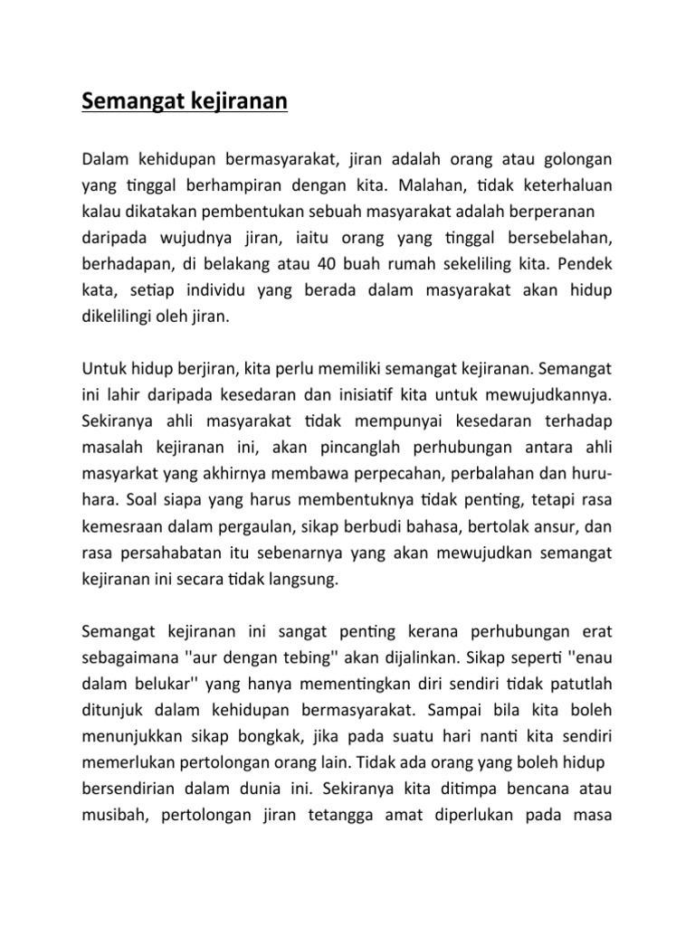 Karangan bahagian b semangat kejiranan. Other Apps - July 22 2018 Malaysia terkenal dengan kaum rakyatnya yang penuh diversiti bangsa pakaian tradisi dan makanannya. Semangat kejiranan dalam kalangan rakyat di negara kita semakin longgar. Suasana yang penuh dengan semangat nasionalisme ini pasti menimbulkan rasa bangga dalam hati anak yang menontonnya itu.