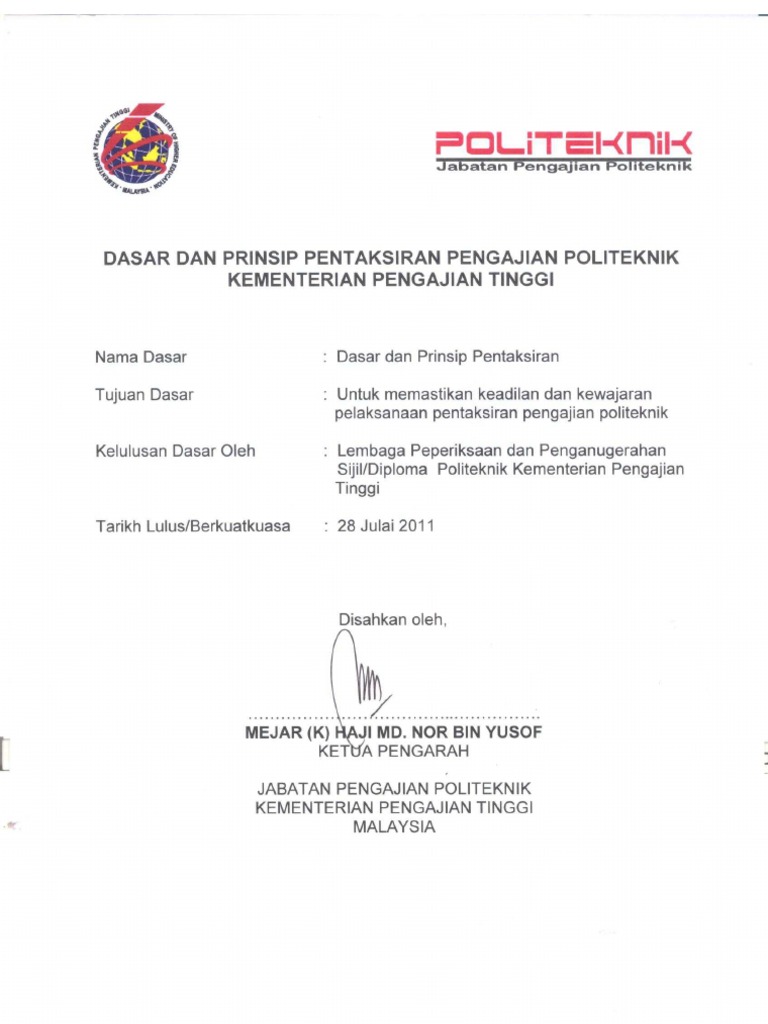 Melanjutkan pelajaran ke institusi pengajian tinggi IPT merupakan idaman bagi setiap pelajar dalam mencapai kemuncak perjalanan akademik masing-masing. Hjh Normala binti Abdullah Dollah Timbalan Pengarah Akademik. 12 Dasar dan Prinsip Jaminan Kualiti disediakan untuk memberi panduan kepada pemimpin staf akademik PPPT dan staf sokongan dalam melaksanakan peranan dan tanggungjawab mereka bagi memastikan kualiti akademik dicapai dipertahan dan.